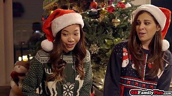 Молодые девушки решили порадовать сводного брата подарками на новый год, но парень не остался в долгу и подарил им свой возбужденный член. Красотки с удовольствием приняли такой неожиданный подарок и начали страстно сосать его перед ёлкой. Сводный брат не упустил момента и жестко оттрахал обеих красоток, а они постанывали от наслаждения, опасаясь застукать мачеху. Новогодняя вечеринка перешла в горячий инцестный трах!